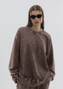 Oversized Sweatshirt 350gsm Washed Unisex Selling Sweaters Vintage Trendy Logo Crewneck