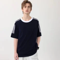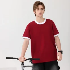 Breathable Ringer O-Neck Regular Men Solid Women Shirts Color 200gsm Fit Design Blocking Tee Cotton Trendy Unisex for