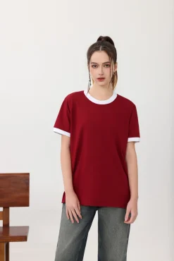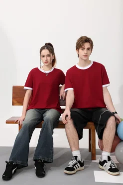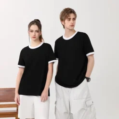 Fit Women Men Regular Shirts Material 200gsm for Trendy Ringer 100% Tee Color O-Neck Cotton Blocking Design Unisex Cotton