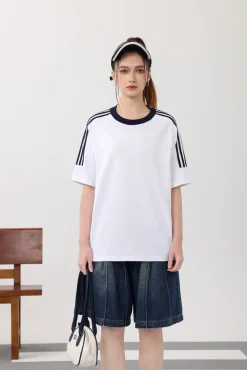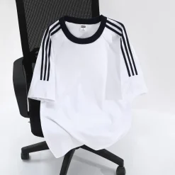 Design Women Plain Manufacturer Men 3-Bar Tees for Classic 200gsm Fit Cotton T-Shirts Sleeves Loose Breathable