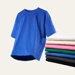 Solid Breathable Knitted T-Shirt Crew 300gsm Casual Oversized Tee Hot Neck Heavyweight 100% Anti-Pilling Unisex Cotton