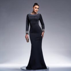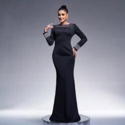 Sequins ostrich hair long sleeve evening dress