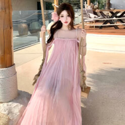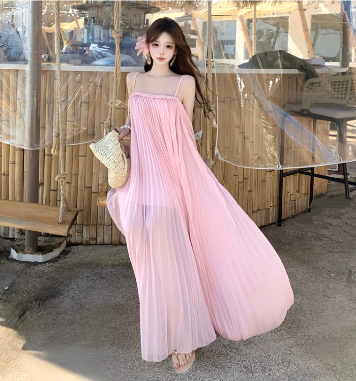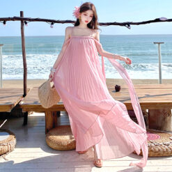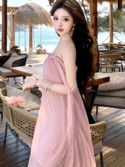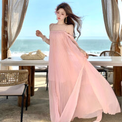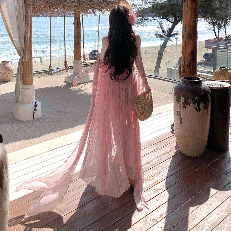 Beautiful vacation dress wrapped chest long dress