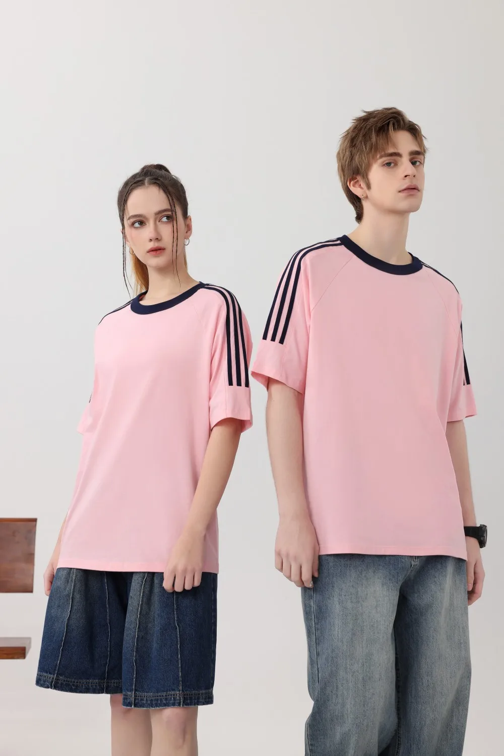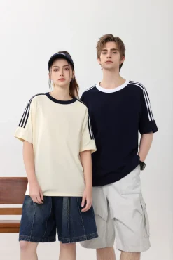 Breathable Design Loose Manufacturer Fit Men Classic Plain Tees 3-Bar 200gsm Sleeves for Women Cotton T-Shirts