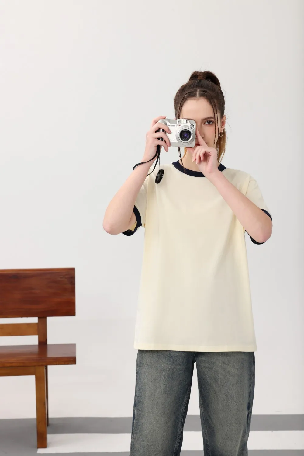 for Unisex Tee Design Shirts 200gsm O-Neck Women Season Ringer Fit Men Trendy Blocking Cotton for Color Regular Autumn