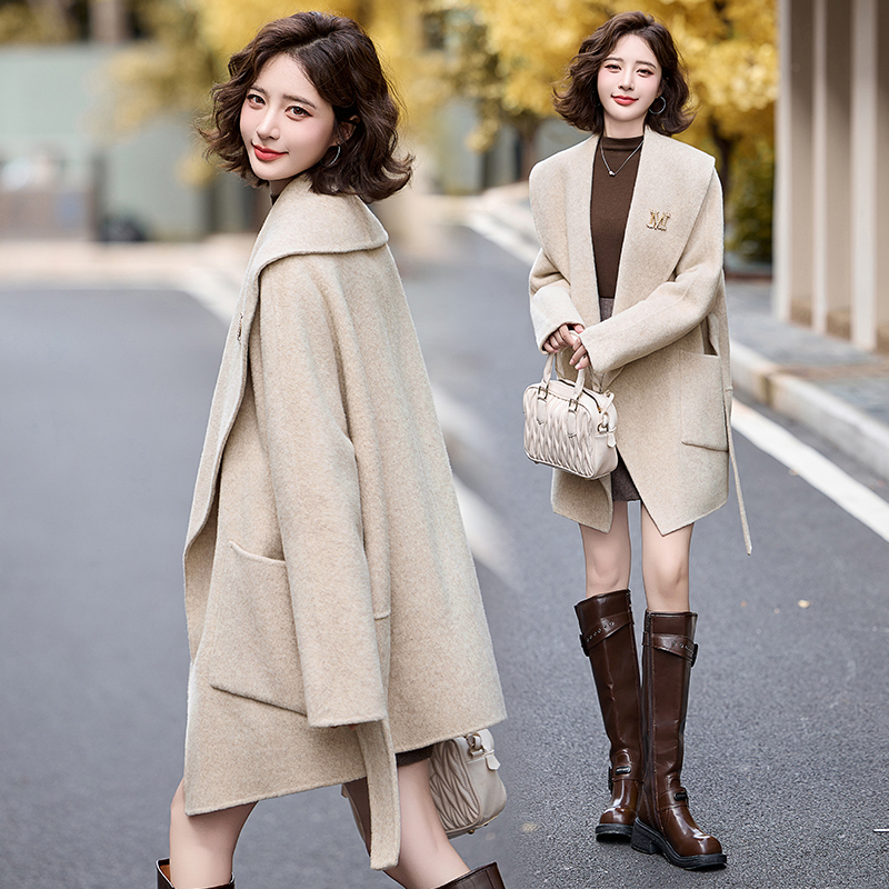 Irregular autumn and winter coat wool overcoat for women