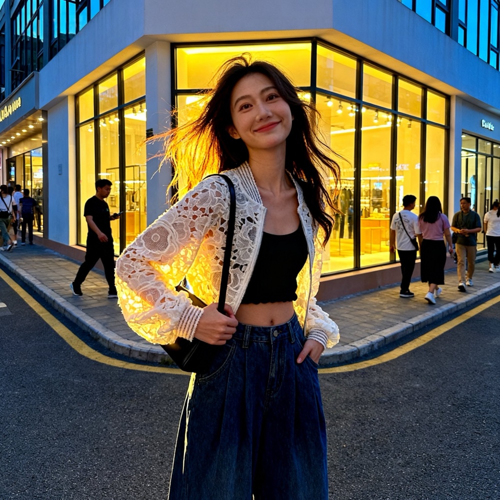 Korean style crochet short tops spring hollow cardigan