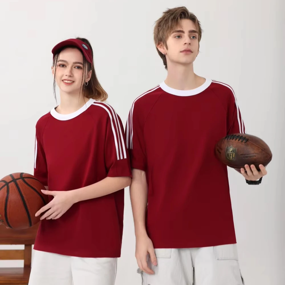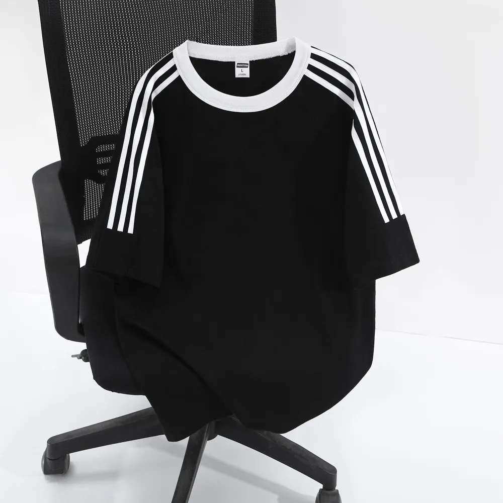 Manufacturer Design 3-Bar 200gsm Men’s Oversized Tees T-Shirts for Classic Plain Breathable Cotton Sleeves