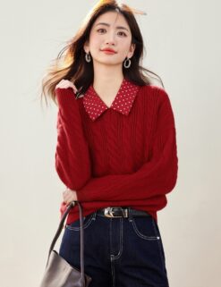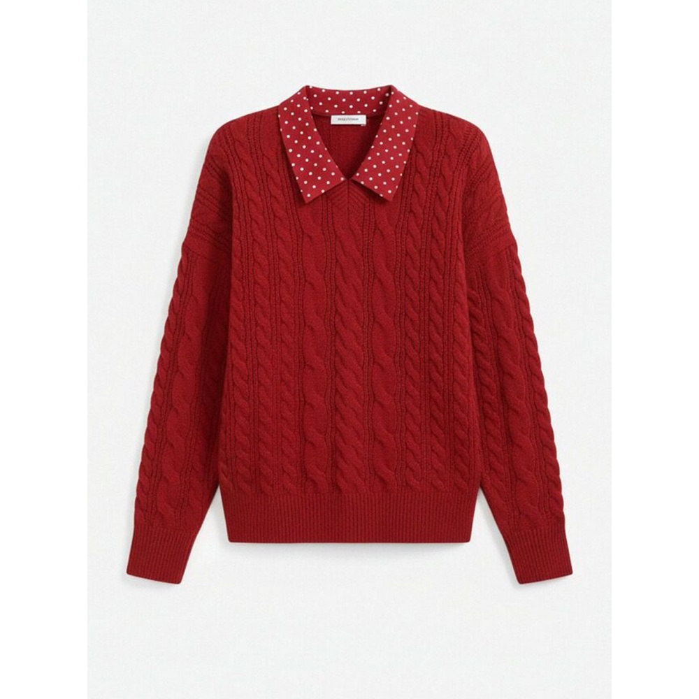 Red polka dot tops Pseudo-two spring sweater