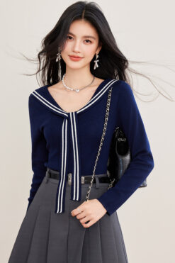 Temperament show young tops navy collar frenum T-shirt