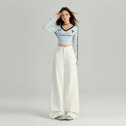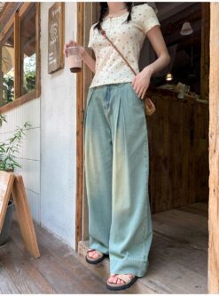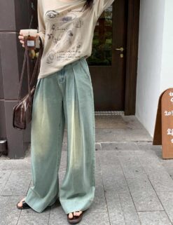 Fold large yard denim slim big speaker wide leg pants