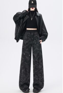 Screw thread straight winter wide leg pants for women