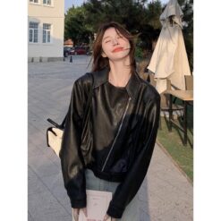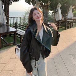 Locomotive autumn coat black leather coat for women