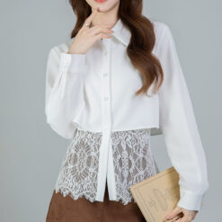 Splice all-match long sleeve tops lace spring shirt