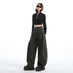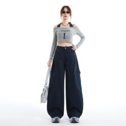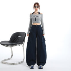 Fold couples work pants loose American style long pants