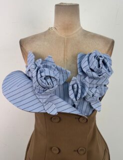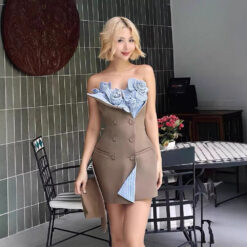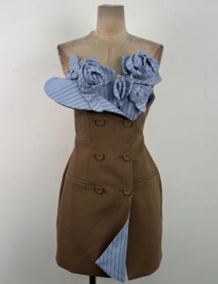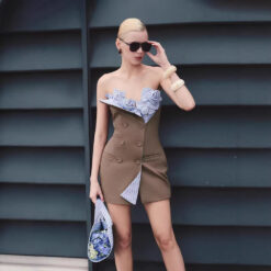 Niche double-breasted dress mixed colors temperament T-back