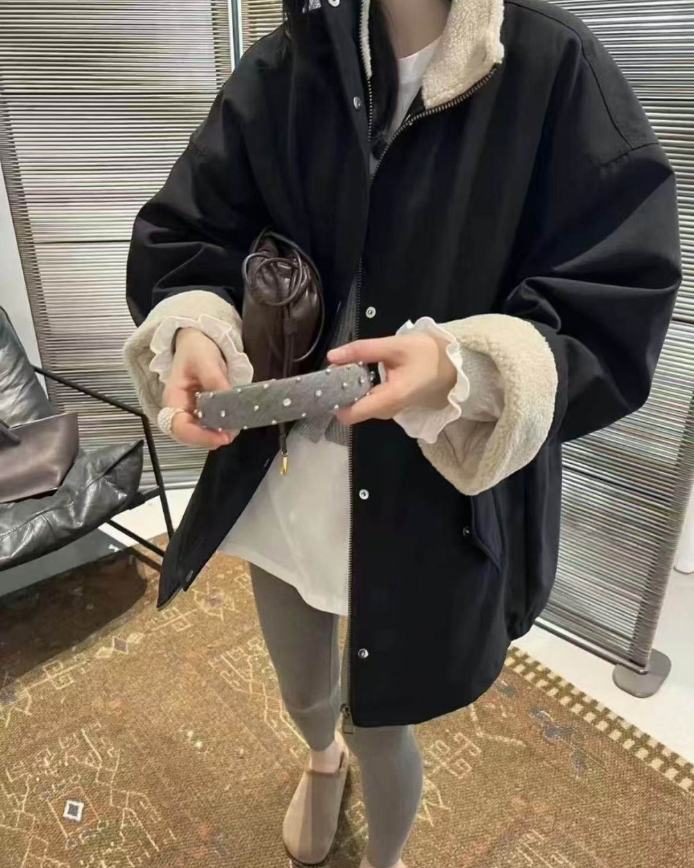 Waterproof lamb fur coat lazy Korean style work clothing