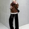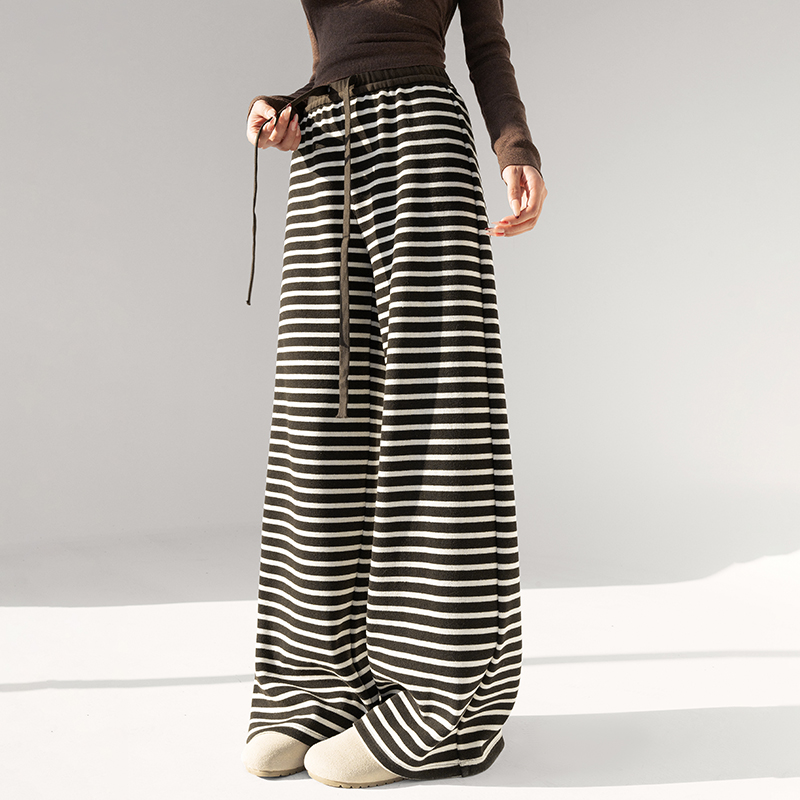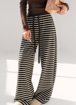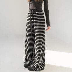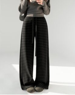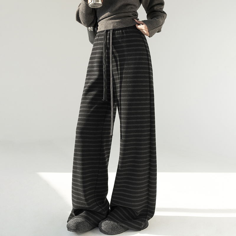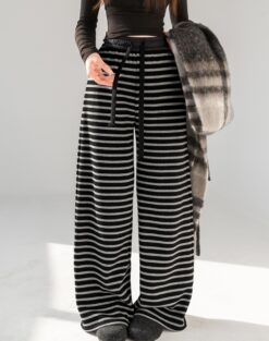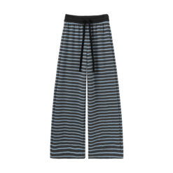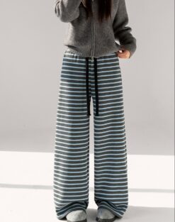 Wide leg knitted casual pants stripe sweatpants for women
